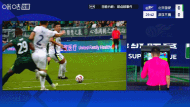 但是担任VAR的万涛并不认可主裁判的判罚。VAR介入后,穆禹辰亲自跑到场边回看慢镜头,最终改判为点球。法比奥主罚命中,国安队开局1-0取得梦幻开局。